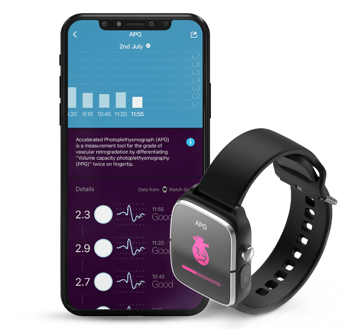 Helo uses proprietary algorithms to decipher the reading and report the vascular age.