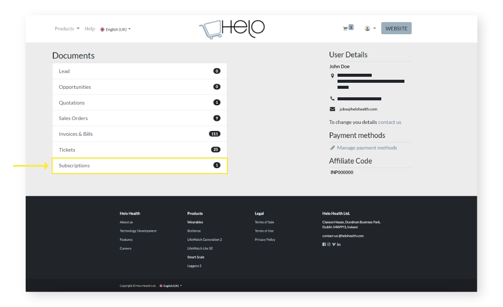 Read here to learn how to change the HeloHealth Shop payment method in your User Details.