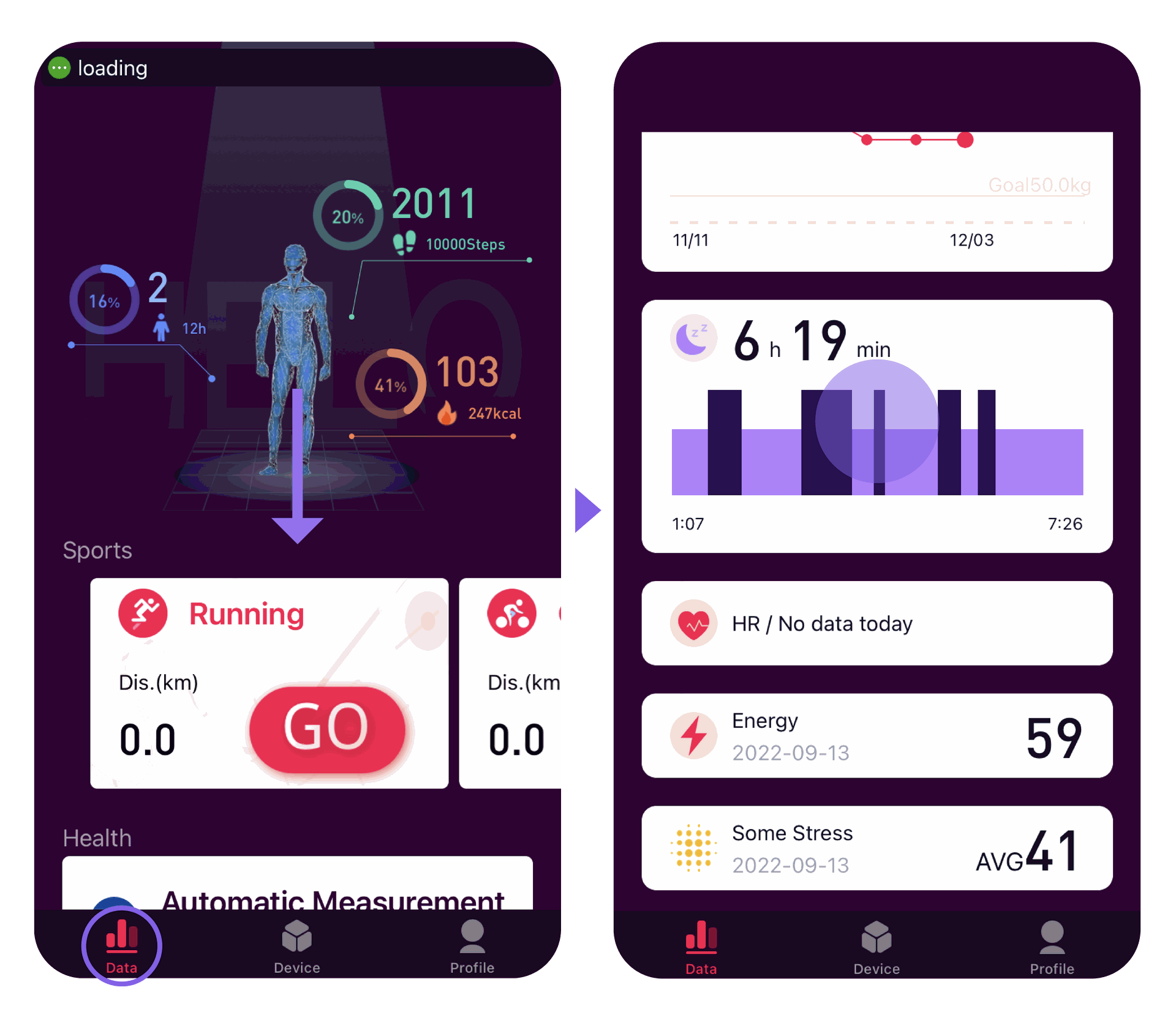 2. Navigate to the Data page and open the Sleep section.