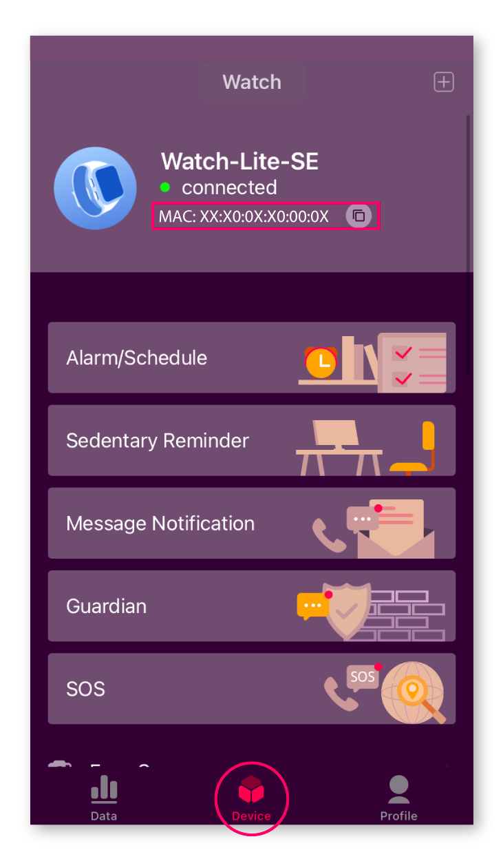 You can find this information by going to the Device page of your Smart App. The MAC address is located below the connection status of the device, on the top of the page.